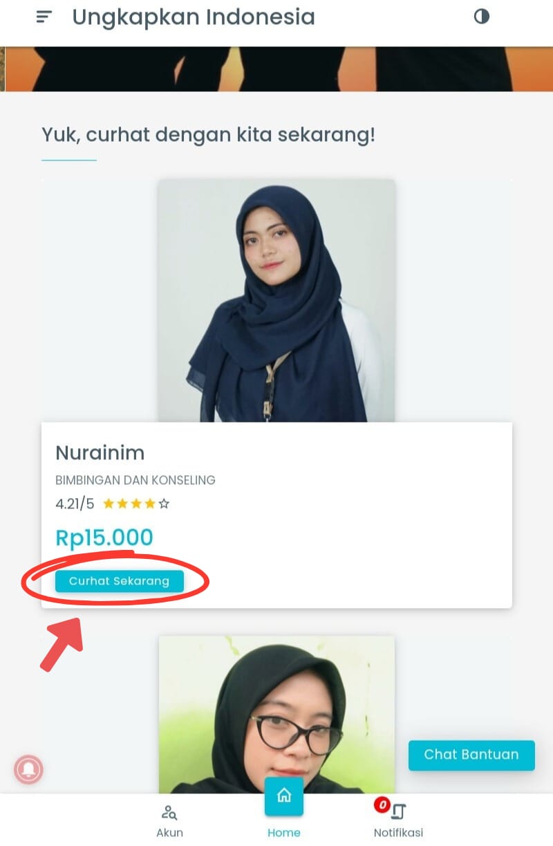 4. Pilih teman curhat kamu dan tekan Curhat Sekarang untuk memilihnya.