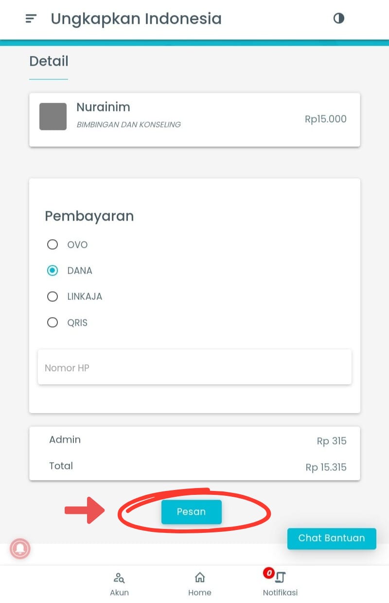 5. Tekan pesan dan lanjutkan pembayaran sesuai dengan jenis pembayaran yang kamu pilih